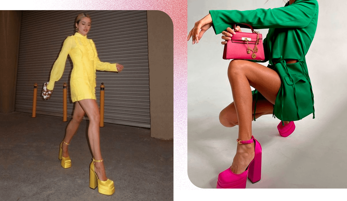 Эффектную обувь на массивной подошве успели примерить все модные инфлюэнсеры. Как правило, ее сочетали с мини-платьями и другой вечерней одеждой. Образы получались стильными и кукольными.