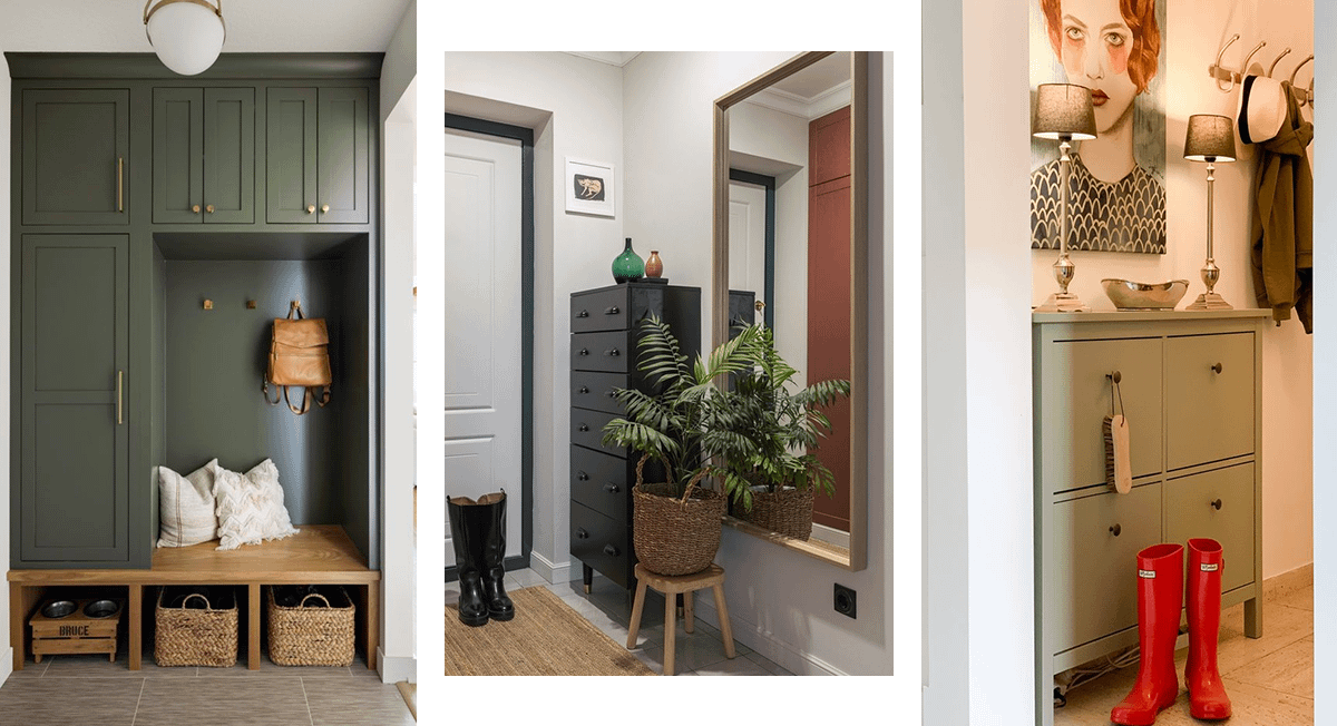 Купи небольшой, но вместительный шкаф с полками разных размеров. Сможешь убрать в него не только ботинки и тапочки, но и нужные мелочи: запасные ключи, влажные салфетки, пакеты для уборки. Свободные стены укрась стильными постерами или установи дополнительный свет.