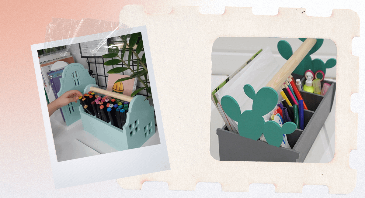 Коробки из-под обуви, как и деревянные подставки для цветов, можно превратить в стильные держатели для карандашей, кистей и другой канцелярии. При желании внутри подставки можно сделать перегородки из плотного картона или быстросохнущей глины.