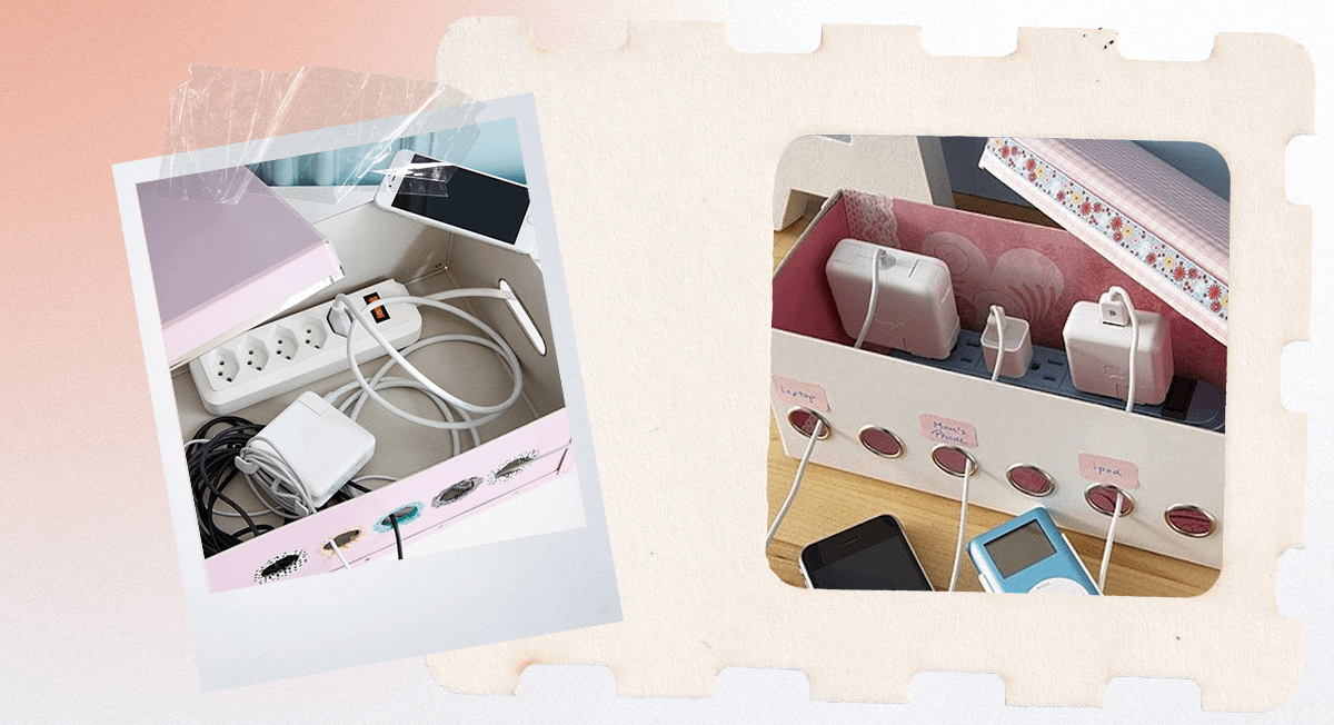 5. Сделай из коробки органайзер для хранения проводов и зарядок