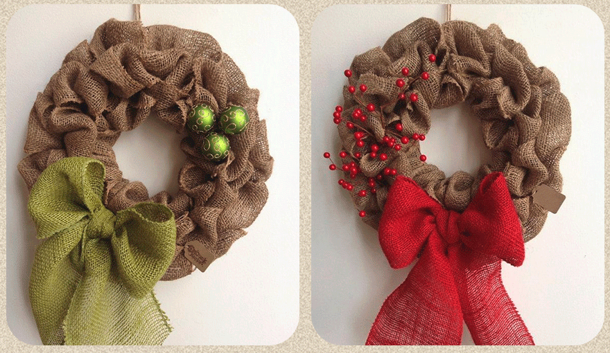 Еще один экологичный вариант украшения — венок из мешковины. Он может прослужить тебе несколько лет и стать центральным новогодним украшением.