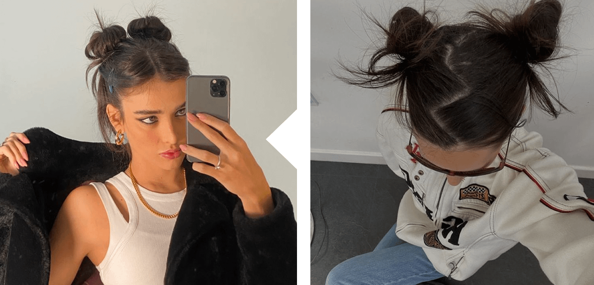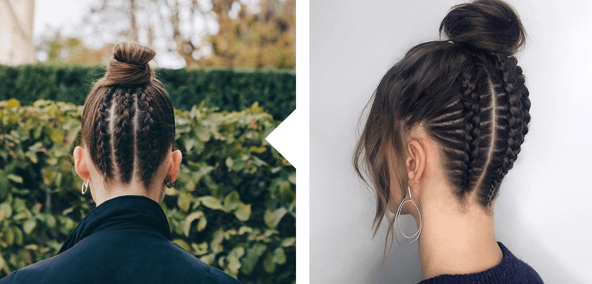 Если ты занимаешься йогой, пилатесом или другой активностью, которая предполагает выполнение упражнений на спине, тебе будет неудобно с хвостом или низким пучком. Гораздо лучше для подобных тренировок подходят два высоких пучка. Прическа выглядит стильно и не мешает ровно положить голову на коврик, когда это нужно. На уровне затылка, под пучками, при желании можешь заплести косички.