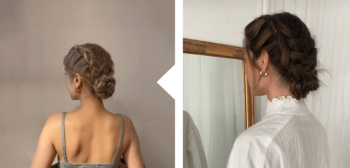 Так же, как и в предыдущем варианте, нужно разделить волосы прямым пробором и сделать две косы. Разница лишь в том, что заплести косички нужно до самых кончиков. Завяжи их мелкими, но тугими резинками. Затем соедини косы и скрути их так, чтобы получился крепкий низкий пучок. Используй еще одну резинку или шпильки, чтобы закрепить его.