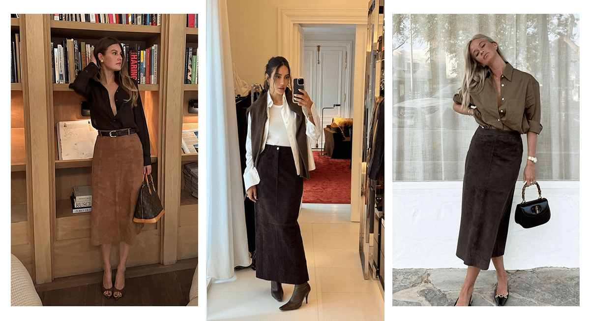 Если уверенно чувствуешь себя в женственной одежде, этой осенью обязательно купи удлиненную замшевую юбку прямого кроя. Носи вещь в образе с однотонной блузкой из льна или другого натурального материала, а также с туфлями на удобном каблуке. Оттенки вещей могут быть любыми, но оптимальный выбор — темно-синий, бежевый и хаки. Они выглядят по-осеннему, при этом стильно и не слишком навязчиво.