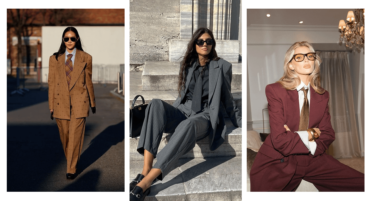 Тем, кому по душе total black, этой осенью советуем купить классические брюки с высокой посадкой и твидовый жакет с акцентными пуговицами. Эти вещи идеально смотрятся вместе и подходят как для работы в офисе, так и для похода в современную галерею. Сумка с цепью, солнцезащитные очки с широкой оправой и металлические часы идеально завершат аутфит.