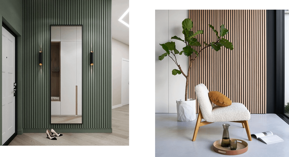 Используй их, чтобы добавить в интерьер больше интересных текстур и цвета. Можешь выбрать панели из натурального дерева или имитирующие древесину материалы. Панели могут быть как цельными, так и состоящими из отдельных элементов.Самые актуальные сегодня — вертикальные панели из тонких и ровных брусков.