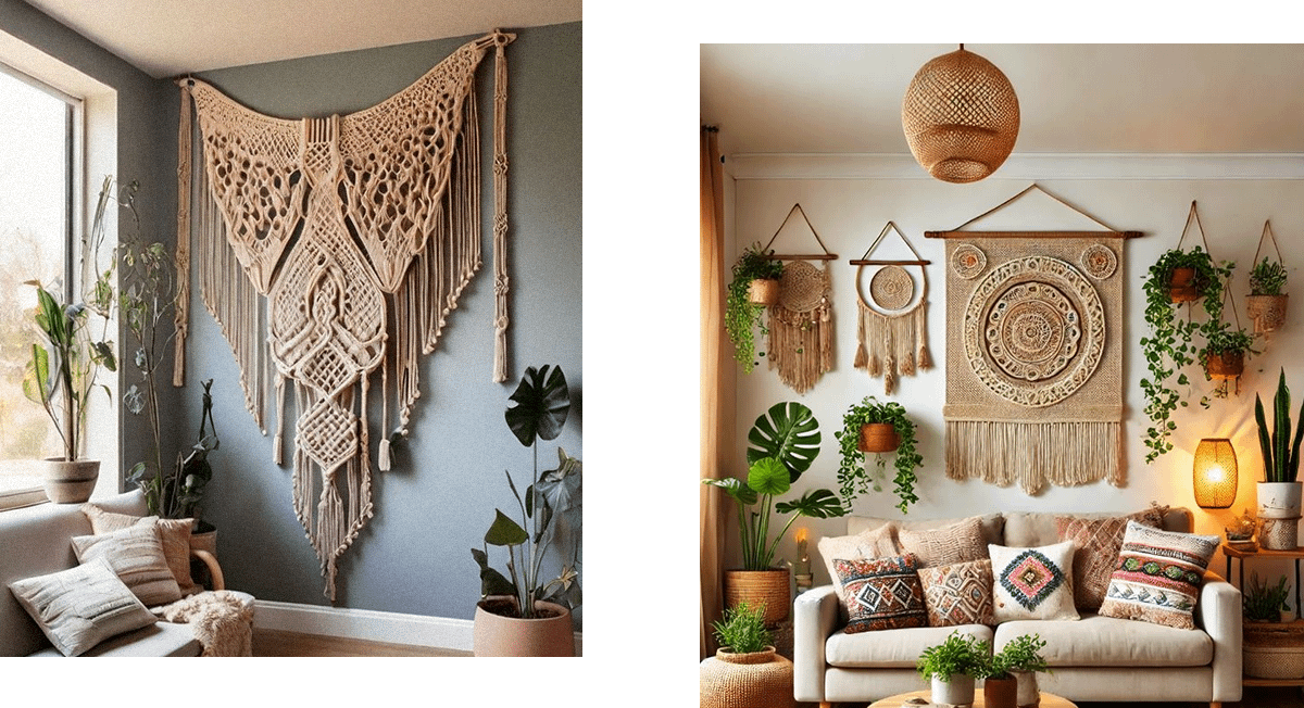 Особенно удачно макраме впишется в интерьер спальни в светлых оттенках. Чтобы комната выглядела идеально, добавь еще несколько деревянных украшений и цветы в горшках.