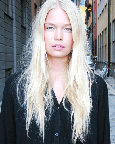 Яркий платиновый блонд, как у известной всем Снежной Королевы — это вариант для тех, кто хочет сделать свой блонд как можно более зимним и холодным. Яркий макияж и темные трендовые губы — зимний образ готов.