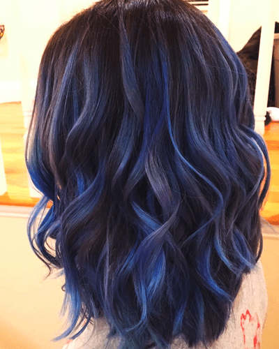 Дымчатый синий и сочный баклажановый оттенки — это зимнее решение для тех, кто любит более экстремальные цвета. Попробуйте смешать несколько оттенков, разбавить их градиентом или отдельно покрашенными прядями, чтобы придать прическе больше цветового объема.