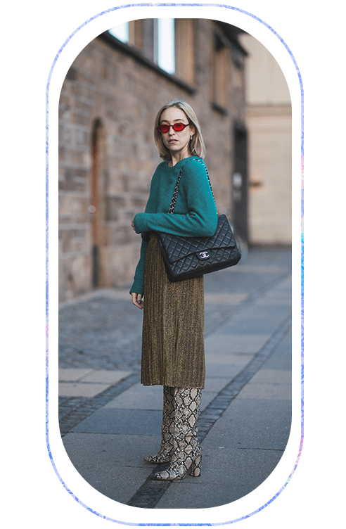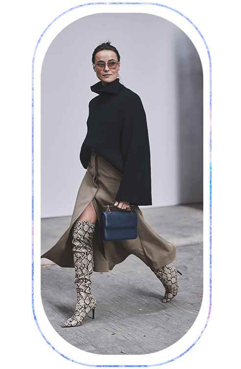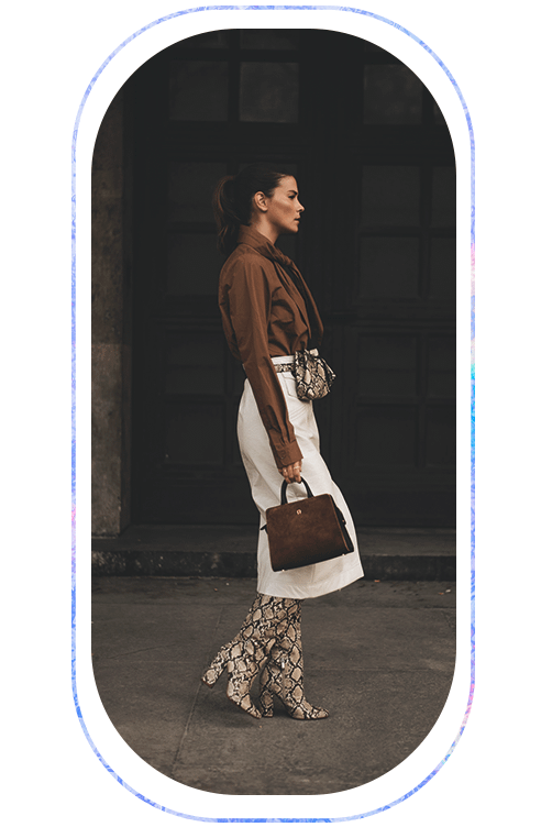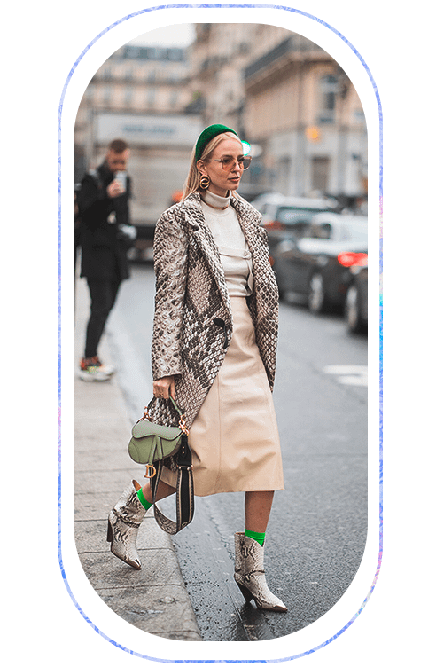 Чтобы образ получился стильным, но при этом сдержанным, обувь с анималистичным принтом сочетай с однотонной одеждой из плотных тканей. В качестве аксессуаров можно использовать сумки или ремни, повторяющие изображение на обуви.