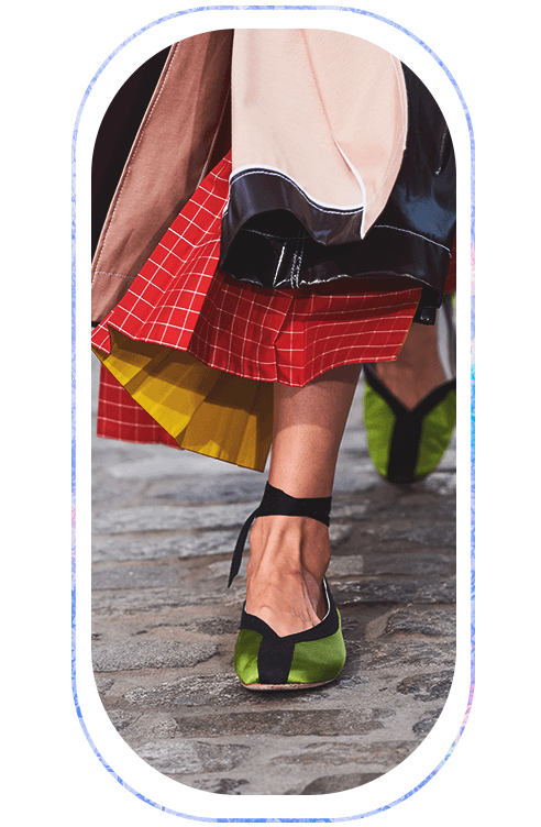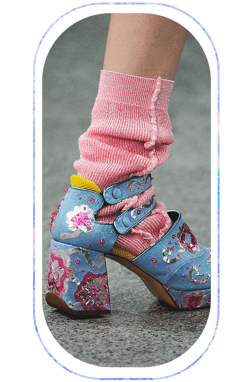 Эффект «босых ног», который создает прозрачная обувь, — самый смелый тренд грядущей весны. Если тебе он по душе, обрати внимание на ботинки на высоком каблуке. Плюс такой обуви в том, что она подойдет под аутфит любого цвета. Единственное условие, которого тебе стоит придерживаться, — следить за качеством педикюра. Если оголять пальцы не хочется, в качестве дополнительного аксессуара используй контрастные цветные носки.