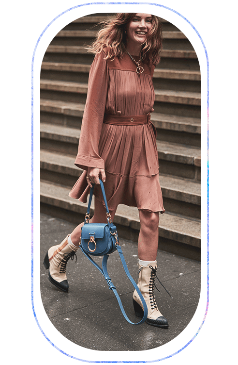 Обувь на массивной подошве подходит для создания как практичных повседневных, так и стильных вечерних образов. Особенно в этом сезоне актуальны массивные цветные ботинки. Отдавай предпочтение яркой атласной и кожаной обуви. Если на этот риск ты пока не готова, то обрати внимание на более классические модели в черном цвете.