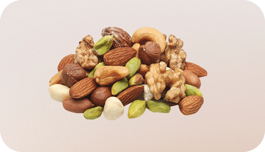 Грецкие орехи, являются одним из лучших растительных источников омега-3 и витаминов группы В. Бразильские орехи содержат много магния и цинка, которые могут помочь снизить беспокойство. Миндаль содержит белок, включая тирозин для выработки нейротрансмиттеров, магний, клетчатку и витамин Е.