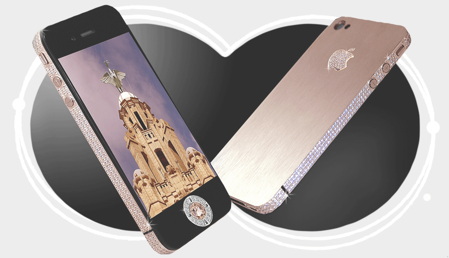 Корпус iPhone выполнен из золота, а на месте кнопки инкрустирован черный алмаз в 26 карат. Помимо этого камня, в отделке корпуса использованы около 653 белых бриллиантов.