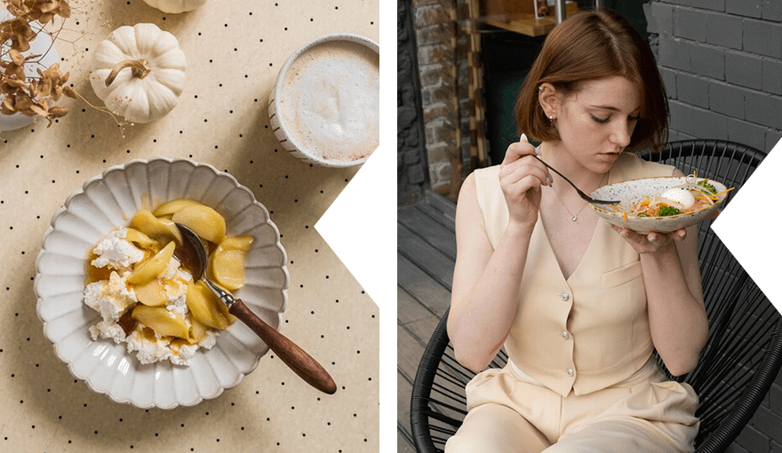 Если хочешь улучшить свое здоровье и отношения с едой, садись за стол, отложив в сторону телефон, и не включай телевизор. Направь всё внимание на тарелку: сосредоточься на текстурах, вкусах и запахе еды.