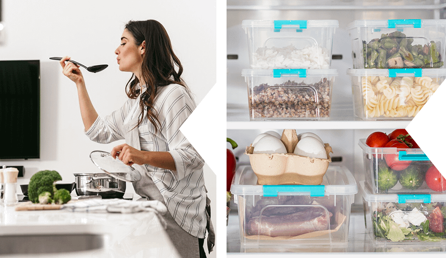В выходной день приучи себя делать заготовки. Например, замораживать ингредиенты, которые используешь для приготовления супов или закусок. Если блюда можно хранить 2-3 дня, готовь их заранее и порционно убирай в стеклянные контейнеры.