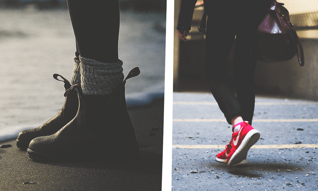 Тяжелая обувь может искажать кости и вызывать боль в ступнях. Если ты предпочитаешь обувь повыше, выбирай модели с широким плоским каблуком. Чтобы защитить ахиллово сухожилие, регулярно меняй модель и высоту каблука. Не ходи босиком и на плоской обуви без супинатора.