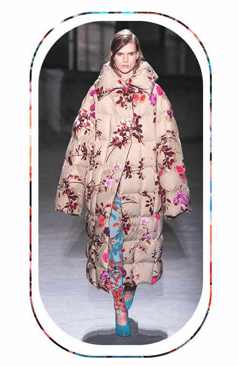 Романтичные рюши и цветочные аппликации на пуховиках в этом сезоне актуальны как никогда. Дизайнеры предлагают отказаться от идеи выбирать зимние куртки исключительно спортивного кроя.