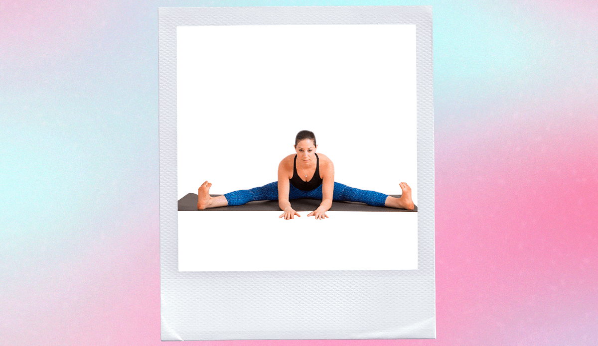 Сядь, расставив ноги в стороны так широко, насколько сможешь. Держи спину прямой. Вытяни руки вперед и наклонись, пока не почувствуешь растяжение в задней части ног.
