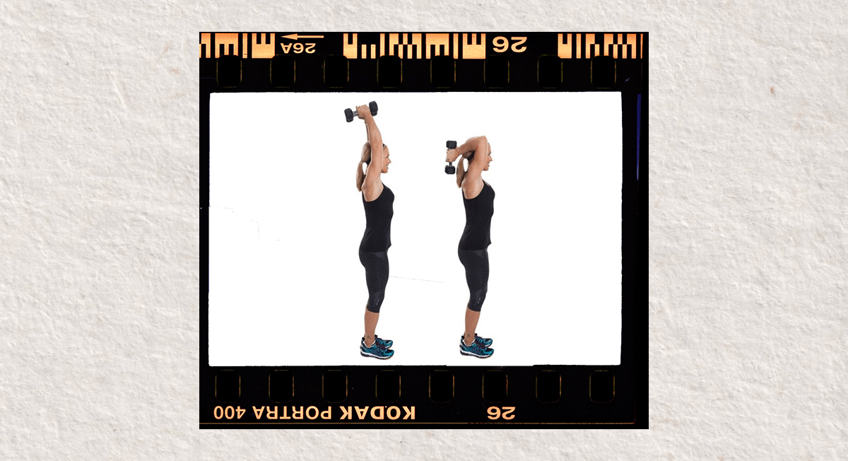 - разгибай и сгибай руки над головой, обращая внимание на работу трицепса;