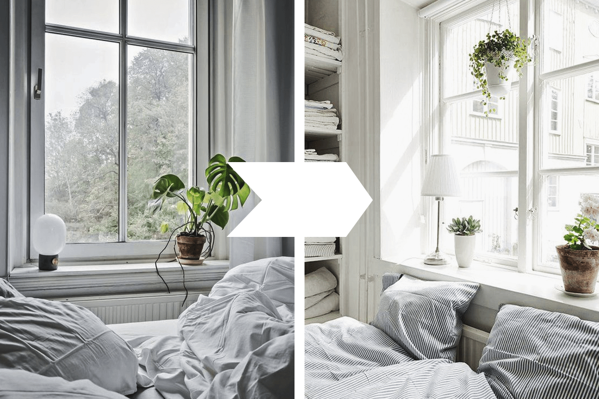 Не оставляй светильники без лампочек и открывай шторы в дневное время. Если света все равно не хватает, купи парочку настольных ламп или торшеры. Идеально, если у тебя есть возможность купить мебель в светлых оттенках или перекрасить стены в белый или другой нейтральный светлый оттенок.
