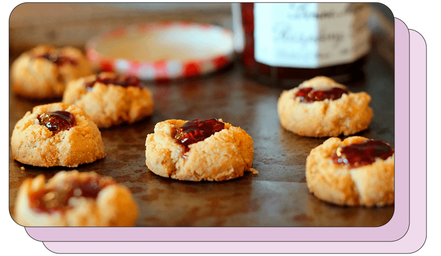 Прелесть этого печенья в том, что оно вряд ли тебе надоест, ведь ты можешь выбирать любой ягодный джем для его приготовления и чередовать начинки.