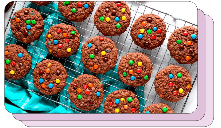Если ты неравнодушна к драже M&M’s, стоит приготовить печенье по этому рецепту. Оно получается довольно мягким, имеет ореховый привкус и интересно смотрится.