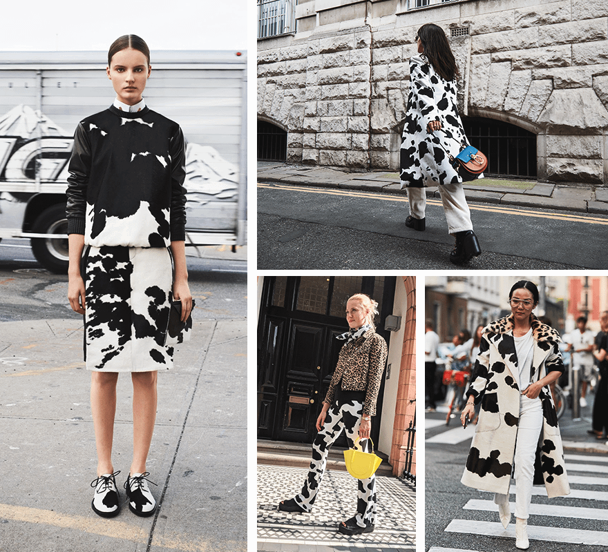 С подачи Doja Cat он стал самым актуальным трендом — даже Меган Маркл использовала его в своих образах. Этот принт самодостаточный, носи его в сочетании с однотонными и минималистичными вещами. Впрочем, если жаждешь экспериментов, ничто не мешает сочетать условную рубашку в коровье пятно и юбку с аналогичным рисунком: следи, чтобы размер узора на деталях образа отличался, так костюм не будет выглядеть вычурно. Не забывай, что с принтом хорошо смотрятся аксессуары цвета фуксия, тиффани или классический синий.