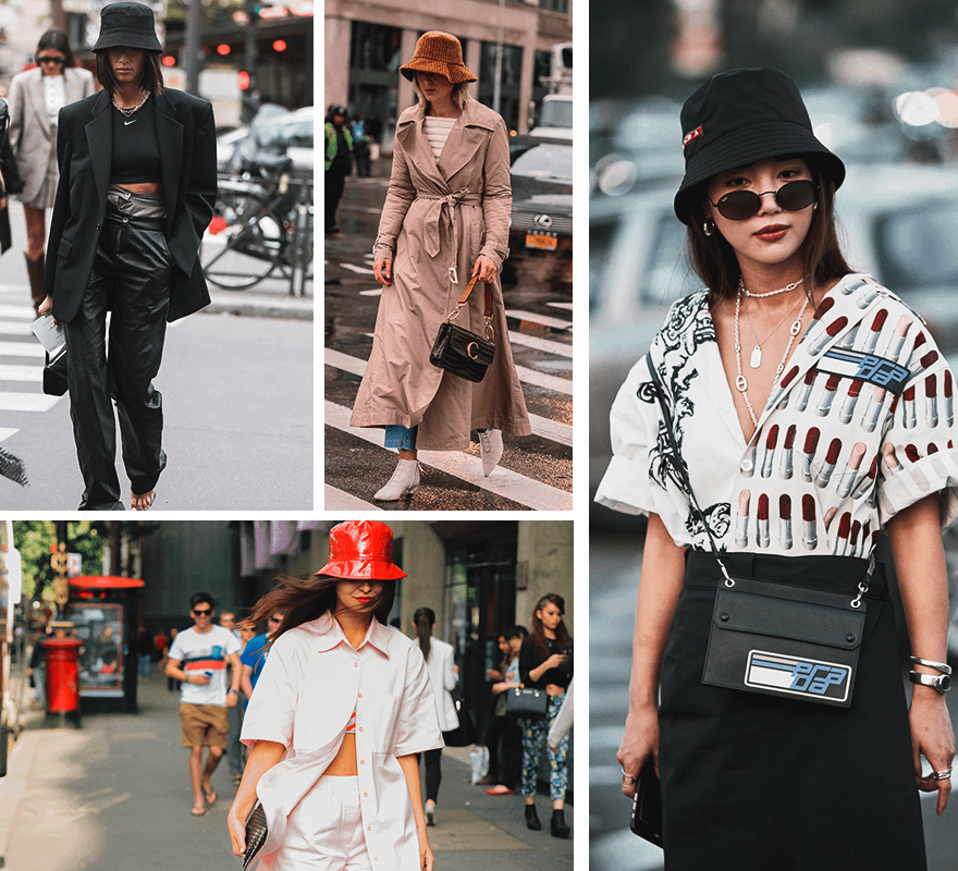 Появились в 2018, актуальны сейчас. Поможет защититься от солнца, спрятать от окружающих несвежую прическу, добавить акцент в образ. Существуют самые разные варианты: из органзы, твида, шерстяные, флисовые. Можно даже подобрать шляпу из того же материала, что и деловой костюм. Почему бы и нет?