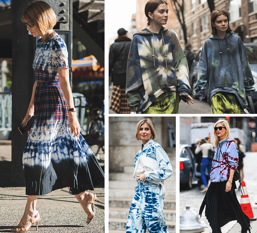 Напоминает о детском лагере или поездке за город, пока ты была ребенком. Тай-дай узоры можно сочетать с чем угодно — от спортивной одежды до классических комплектов. Главное, чтобы их не было слишком много в образе. К слову, такой принт не потребует от тебя больших вложений — достаточно найти ненужную футболку, денежные резинки и краски либо отбеливатель.