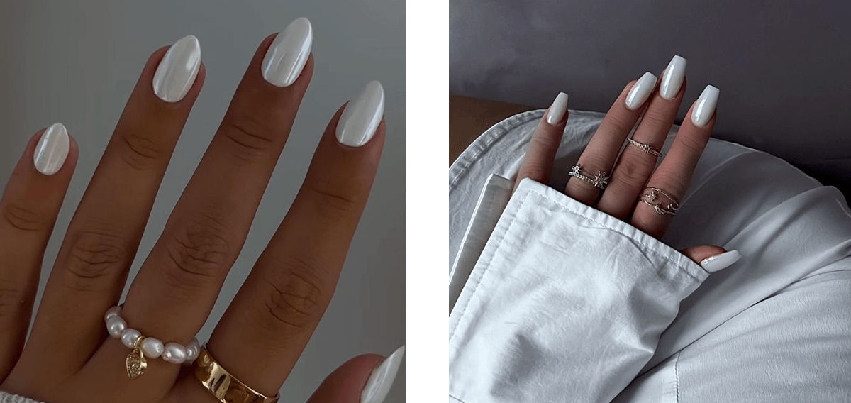 Хотим отметить: выбирай либо серебристый, либо золотистый оттенок блестящего лака в зависимости от того, из какого металла носишь украшения — если они будут сочетаться, твой образ окажется более продуманным и интересным.