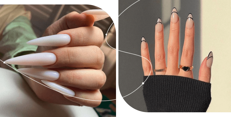 Но несмотря на то, что ногти-стилеты долгое время пользовались большой популярностью, сегодня они окончательно устарели. На замену острым коготками пришли более классические формы: удлиненный миндаль, балерина и квадрат.