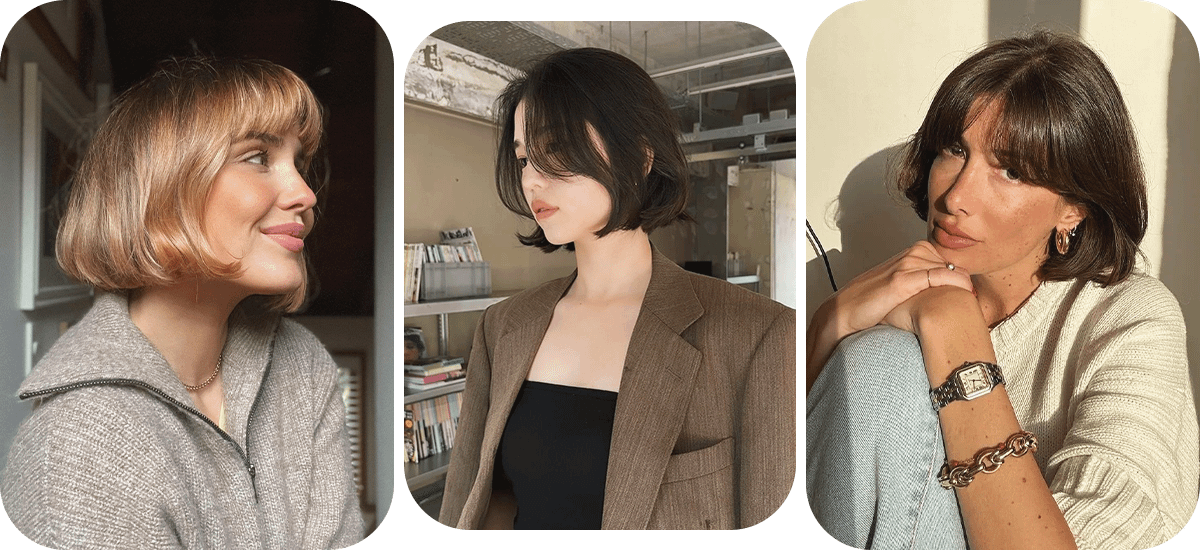 Речь идет о челке, напоминающей французскую, но не требующей идеальной укладки — ее прелесть в естественной текстуре. Чтобы подчеркнуть характер челки, достаточно нанести на пряди немного текстурирующей соли или мусса и слегка взбить их пальцами.