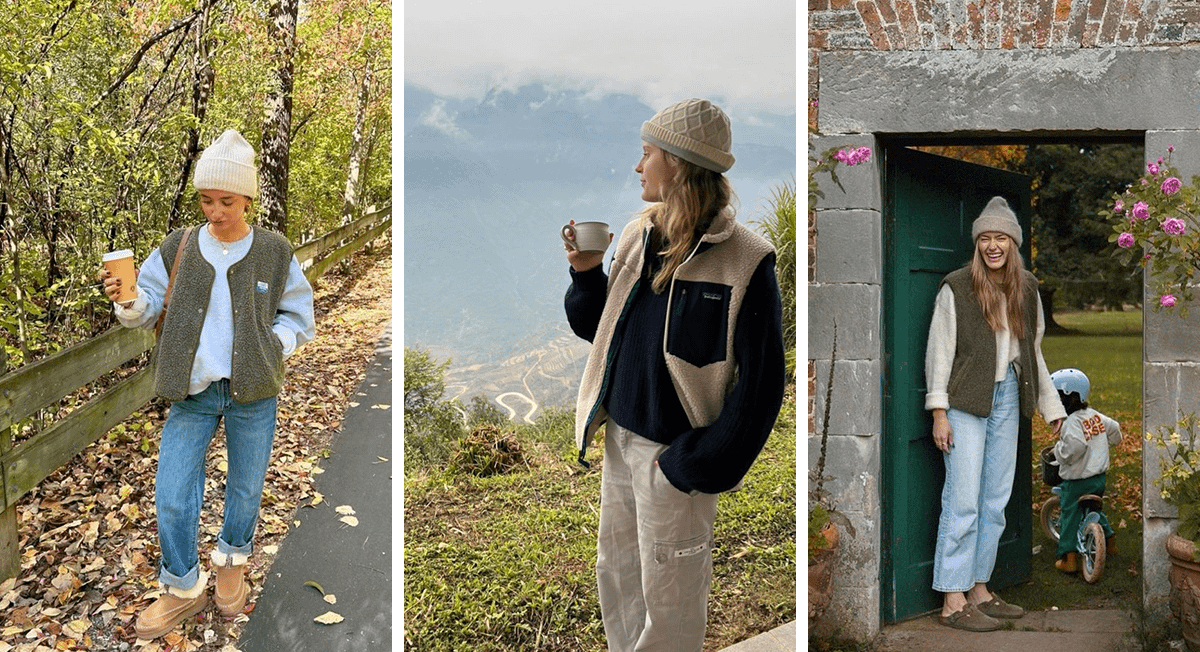 Одежда из флиса идеальна для холодной осени, поскольку отлично греет, не нуждается в особом уходе и хорошо сочетается с самыми разными вещами. Жилетки без рукавов особенно стильно выглядят в сочетании с базовыми джинсами, кофтами свободного кроя и шапками бини.