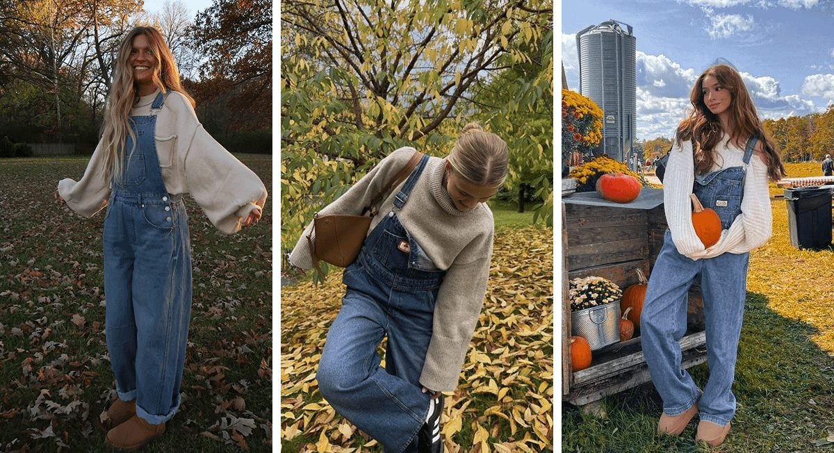 Возможно, прошлым летом ты купила широкий комбинезон из денима — тогда они были на пике популярности. Достань его с дальней полки и надень поверх широкого и уютного осеннего свитера. Кроссовки замени уггами или казаками, а рюкзак — замшевой сумкой или плетеной корзиной.