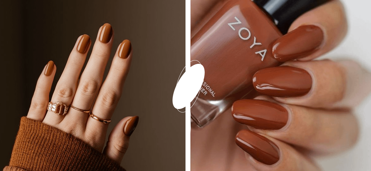 Можешь поэкспериментировать с насыщенностью оттенков лака, а также либо покрыть принтом все ногти, либо выделить один какой-то из них, а остальные покрыть коричневым или шоколадным цветом.