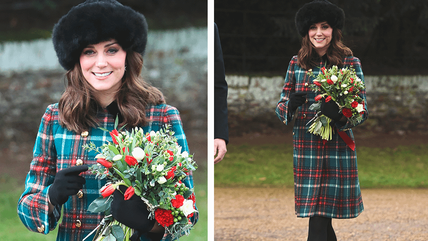 В 2017 году Кейт Миддлтон поразила всех клетчатым платьем-пальто от Miu Miu, чьи цвета ассоциировались одновременно и с духом Рождества, и с характером Шотландии — эффект достигнут благодаря беспроигрышному сочетанию красного, зеленого и золотого. На этом герцогиня Кембриджская не остановилась: ее пушистая черная шляпа ничуть не хуже заряжает праздничным настроем.