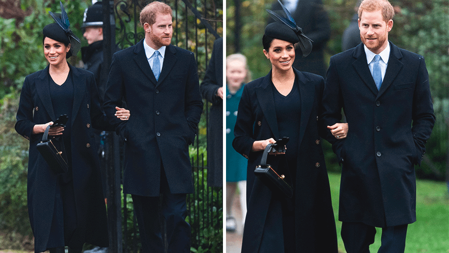 Подобно паре Джоли – Питт в остросюжетной мелодраме, в 2018 году Гарри и Меган отдались в объятия черного. Кожаные ботинки, пальто от Victoria Backham, темное перо, украшающее скромную шляпку Маркл, — вот вам и рок-н-ролл в условиях королевского протокола.