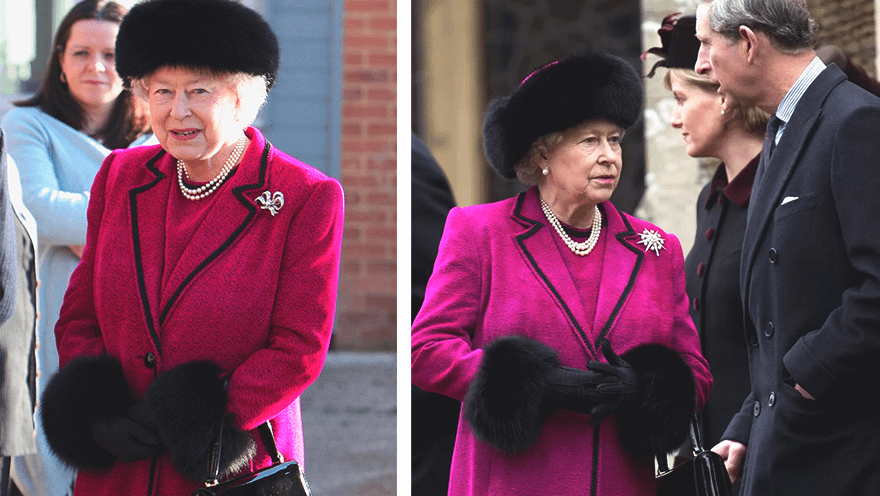 Тот факт, что королеве практически 100 лет, не значит, что ее пора списывать со счетов, если речь идет о моде. Для Рождества в 2018 году Елизавета выбрала белоснежное пальто с окантовкой цвета фуксии, дополнив его черными перчатками, сумкой и туфлями, а также светлой шляпой, украшенной перьями. Подобное сочетание, к слову, актуально и по сей день.