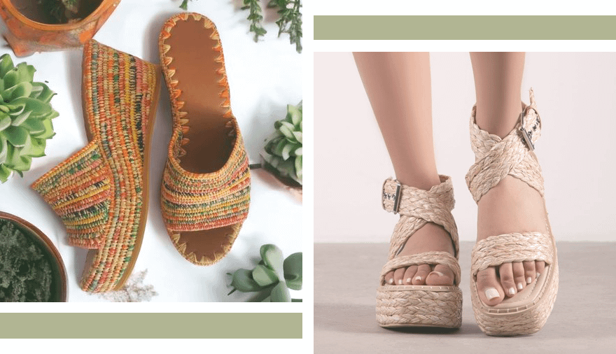 Если любишь обувь из натурального материала, присмотрись не только к кожаным босоножкам, но и моделям из рафии. Они легко продуваются и обеспечивают комфорт даже в самые жаркие дни.