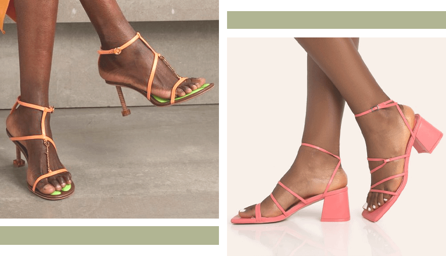 Этим летом в моду возвращаются босоножки в стиле гладиаторов — с тонкими ремешками. Они хорошо сочетаются с женственными образами, особенно легкими платьями.
