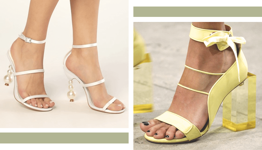 Скульптурные каблуки помогают акцентировать внимание на обуви и сделать даже классический образ интересным и необычным. Поэтому стоит подобрать пару босоножек именно такой модели. С изгибом, дополнительными деталями, отверстием посередине, в виде фигур и предметов — любые скульптурные каблуки помогут добавить яркий акцент твоему образу и проявить индивидуальность.