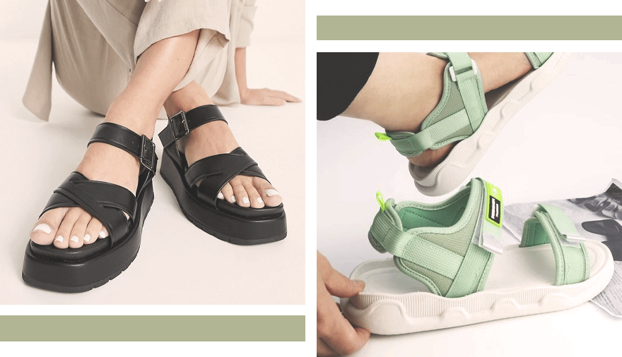 Еще одна хорошая новость для тех, кто ценит комфортную обувь — в этом году актуальна высокая платформа. Она может быть как с подъемом в области пятки, так и полностью плоской. Выбирай босоножки, а также шлепанцы на массивной платформе. Особенно стоит присмотреться к объемным босоножкам и спортивным моделям.
