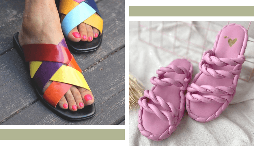В этом сезоне стоит отказаться от нейтральных оттенков шлепанцев в пользу ярких и насыщенных цветов. Обувь может быть как монохромной, так и с принтом, а также с сочетанием нескольких тонов.