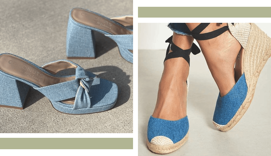 Джинсовые босоножки, которые были популярны в 2000-х, возвращаются в моду. Они хорошо сочетаются не только с юбками из денима и джинсами — ими можно дополнять образы с платьями, а также светлыми брюками.