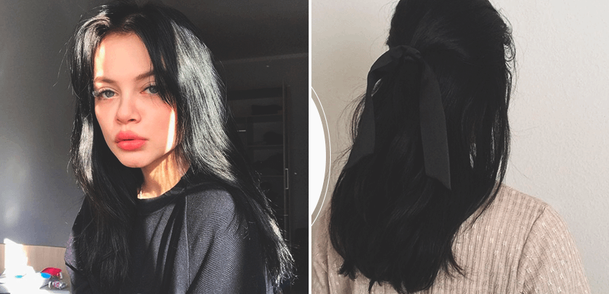 Волосы в идеально черном оттенке — тренд для самых страстных и ярких натур. В сочетании с темной помадой, массивными украшениями и винтажными солнечными очками черные волосы позволят создать по-настоящему благородный и изящный образ.