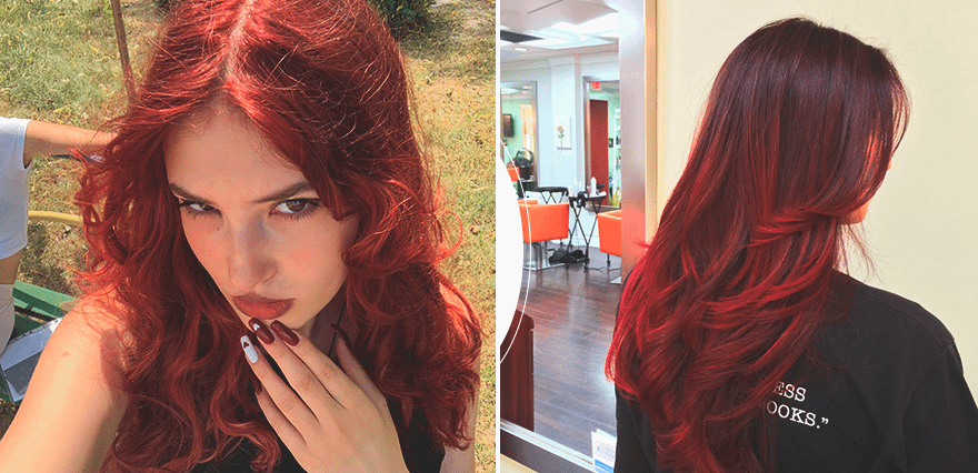 Темные оттенки красного подойдут девушкам с идеально ровной кожей. А вот тем, кто борется с акне или другими кожными несовершенствами, от подобного окрашивания стоит отказаться, так как есть риск подчеркнуть недостатки кожи.