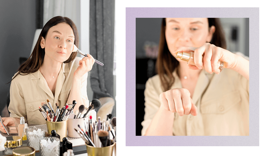 Кроме того, не стоит перегружать макияж пудрой. Лучше всего выбирать тональную основу с матовым финишем, чтобы не перегружать образ. А если всё же хочешь избавиться от блеска с помощью пудры, выбирай легкие, прозрачные текстуры и наноси их невесомым слоем.