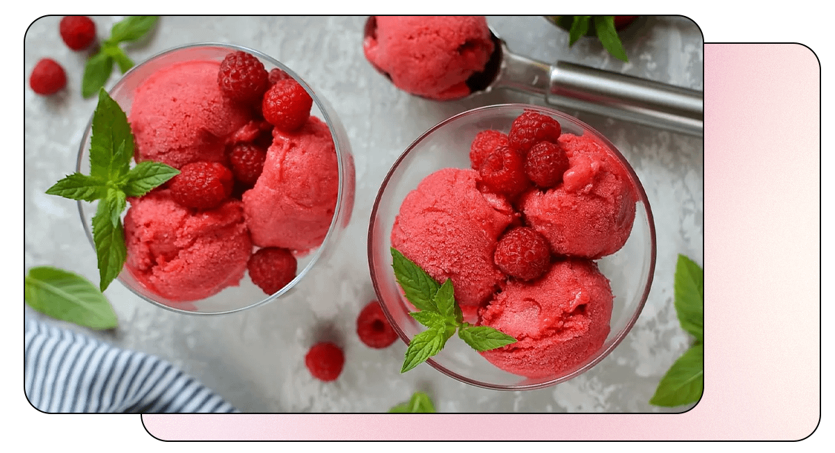Легкое и освежающее, без молочных продуктов — только малина, кислота и капля меда. Идеальное решение для тех, у кого непереносимость лактозы.