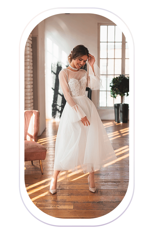 Современные невесты отказываются от стереотипов о том, что свадебное платье должно быть пышным и длинным. Все чаще девушки выбирают более комфортные, укороченные модели свадебных платьев. Это не только удобный, но и стильный вариант. В этом году особенно актуальны обтягивающие платья длины миди и мини-платья с пышными рукавами-фонариками.